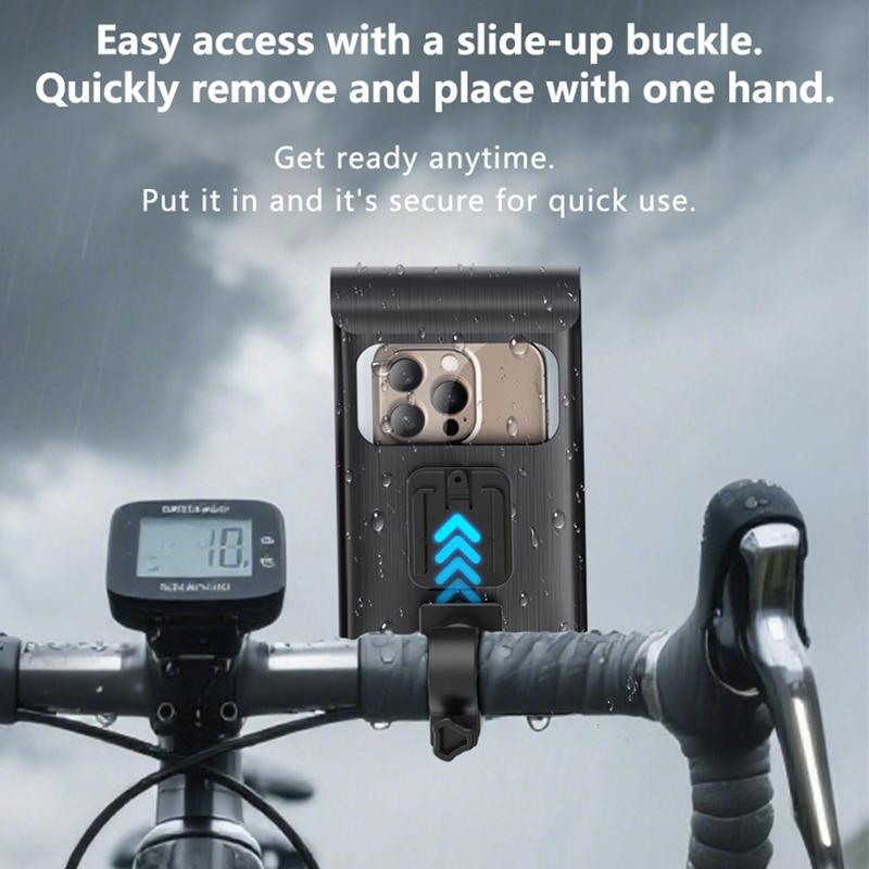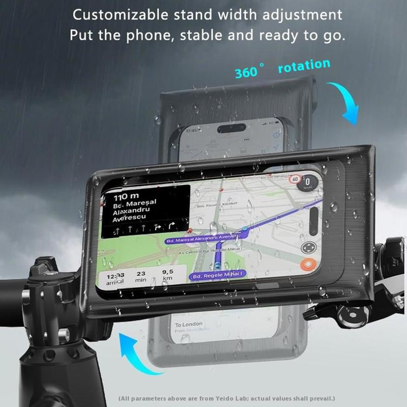 Kjør i all slags vær med YESIDO C333 vanntett telefonholderveske, designet for sykler og elsykler. Den helt lukkede konstruksjonen med IP67-klassifisering beskytter telefonen mot regn, støv og sprut fra veien, mens det store gjennomsiktige vinduet gjør at skjermen er synlig for navigering og samtaler. Med 360 graders rotasjon og en sikker styrefeste kan du stille inn den perfekte visningsvinkelen og holde enheten stabil på hver tur.