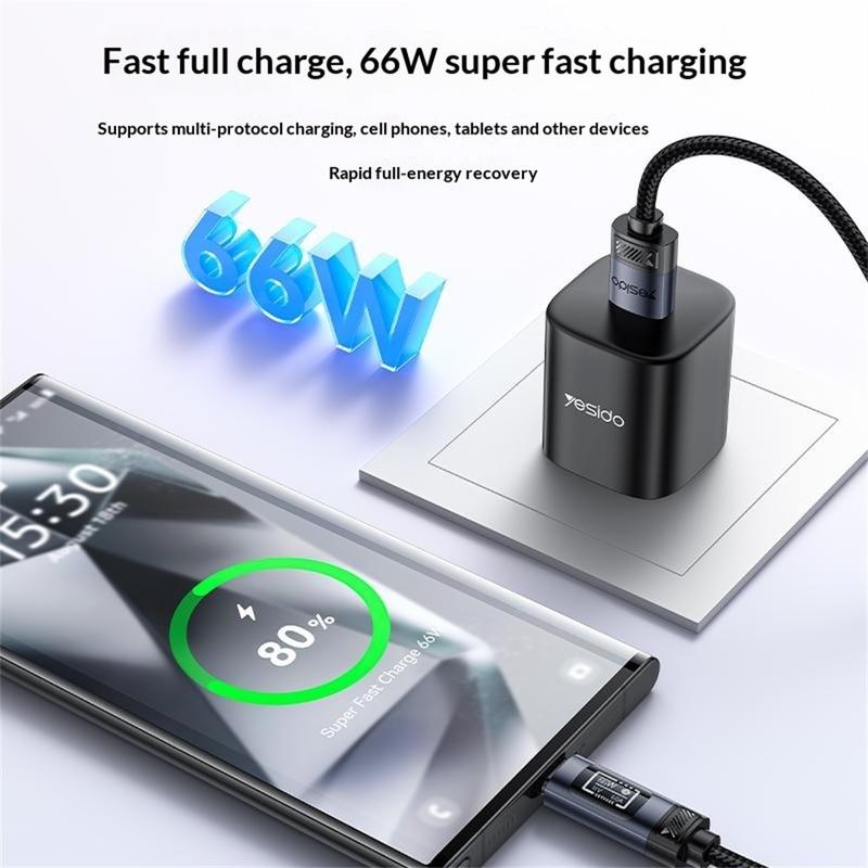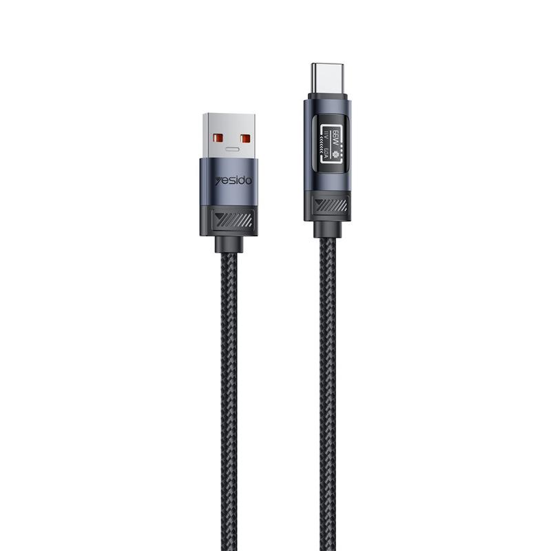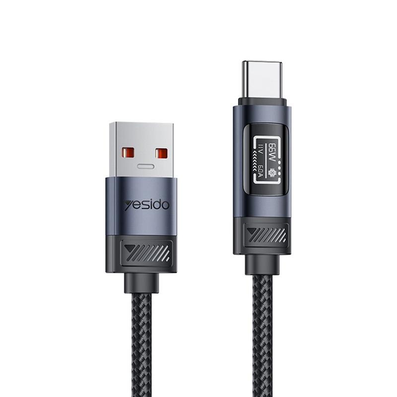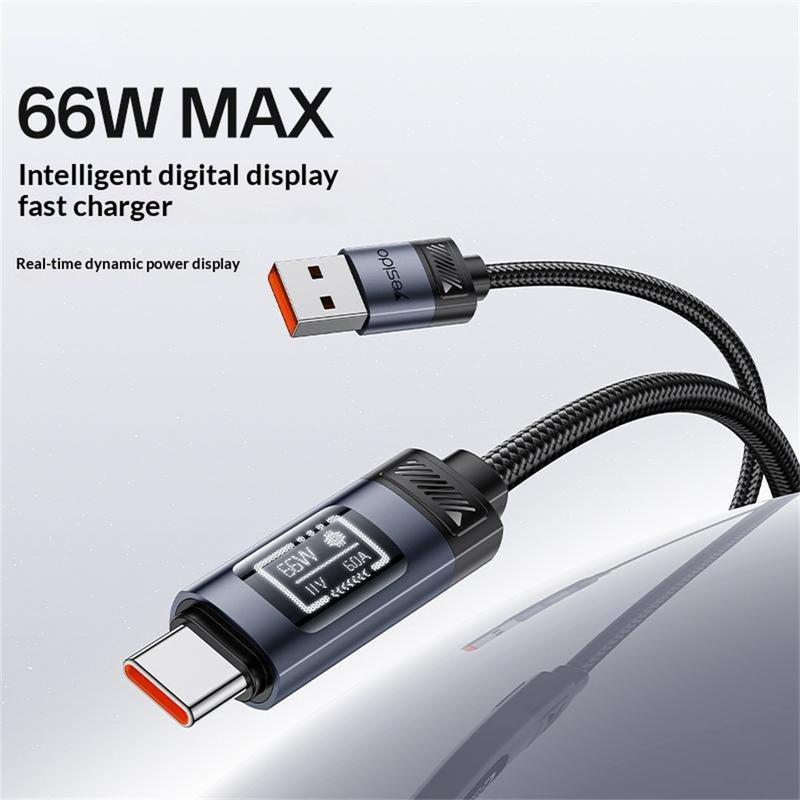 Yesido CA138C 66W hurtigladekabel - USB-A til USB-C, flettet datakabel i nylon med digital OLED-skjerm - 1.2m