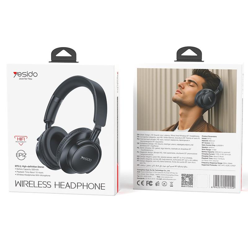 Yesido EP12 Over-Ear Bluetooth-hodetelefoner - komfort uten trykk, dobbel kablet/trådløs modus, støtte for stemmeassistent