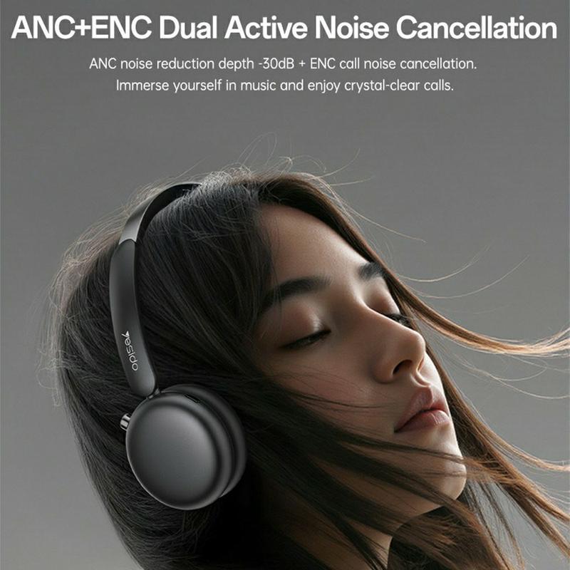 Yesido EP13 trådløse over-ear-hodetelefoner med ANC+ENC - 40 mm titandrivere, 50 timers batterilevetid, BT 5.3, spillmodus, roterende kontroll