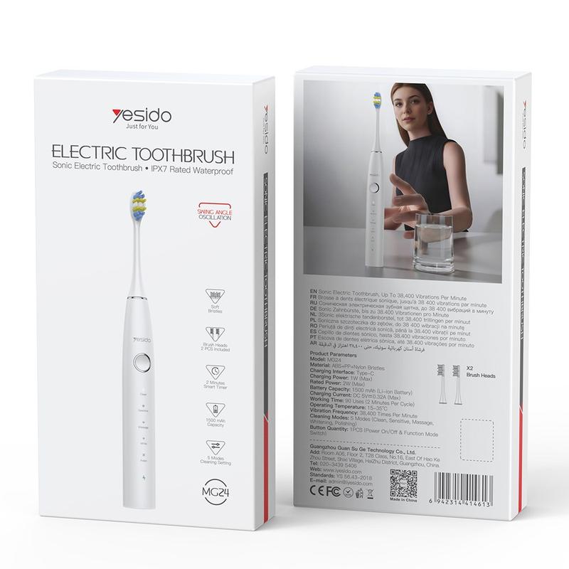 Yesido MG24 Sonic elektrisk tannbørste - 38 400 VPM, IPX7 vanntett, 5 rengjøringsmoduser, lang batterilevetid