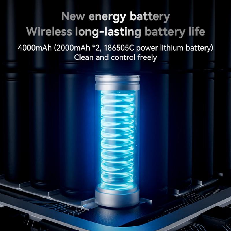 - Oppladbart 4000 mAh-batteri: Drives av doble 2000 mAh litiumbatterier med Type-C-lading (5V/2A).