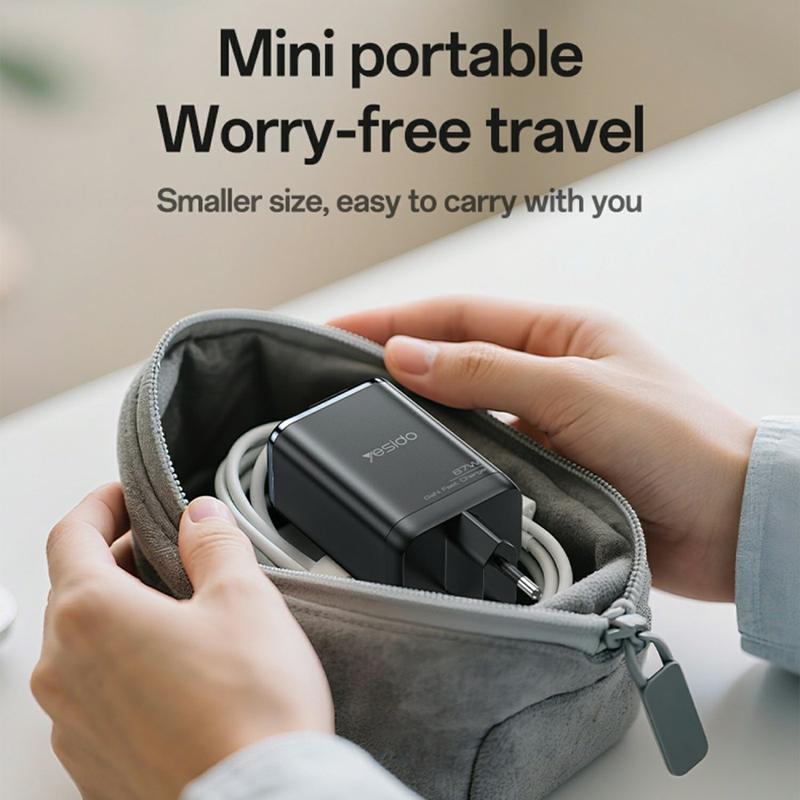 YESIDO YC100 kombinerer hastighet, bærbarhet og sikkerhet i en elegant design. Den uttrekkbare Type-C-kabelen eliminerer rot, mens GaN-brikkesettet sørger for effektiv og kjølig ytelse - noe som gjør den til den ideelle reise- og hverdagsladekompanjongen.