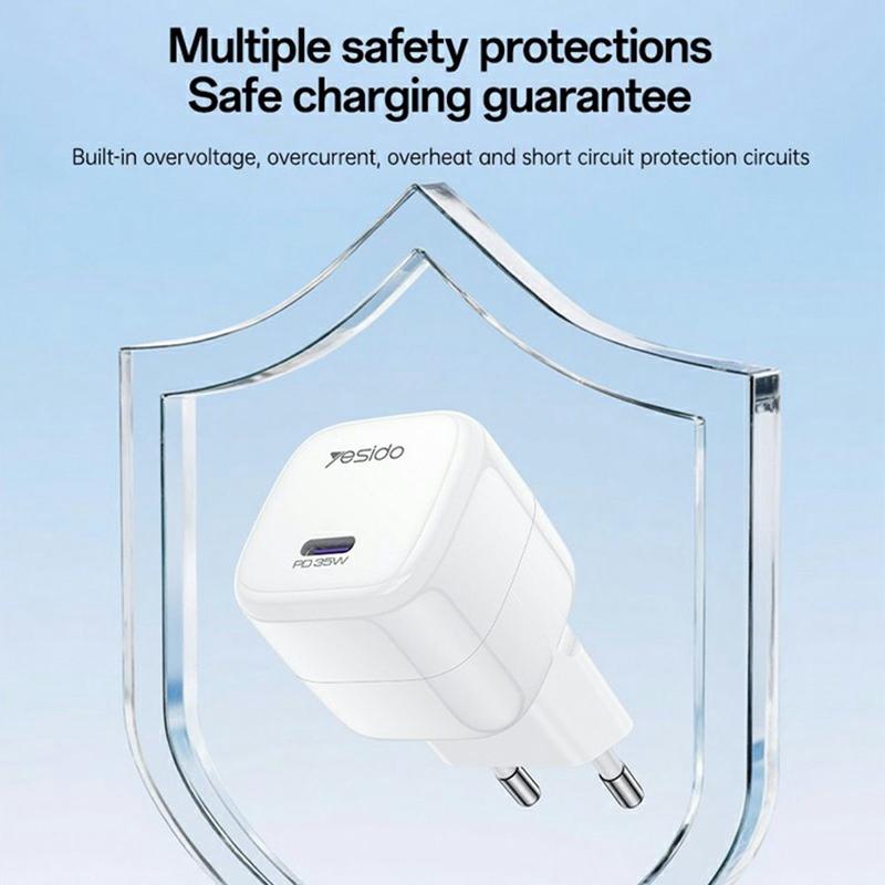 Lad raskere og med mindre plass ved hjelp av YESIDO YC103 PD 35W GaN-vegglader. Denne kompakte USB-C-strømadapteren er laget for moderne telefoner, nettbrett og hverdagsapparater som støtter Power Delivery. Med en utgangseffekt på opptil 35W justerer den strømmen til enheten din på en intelligent måte for effektiv lading, mens GaN-teknologien bidrar til å forbedre energieffektiviteten og varmestyringen - perfekt for daglig bruk og reiser. Det mini-stablede designet passer lett i lommer og små vesker, og den brede AC 100-240 V-inngangen gjør den til en pålitelig følgesvenn på reiser. Flere sikkerhetsbeskyttelser og smart deteksjon bidrar til å beskytte både enhetene dine og laderen, inkludert en skånsom lavstrømsladingsfase for sikrere lading over natten.