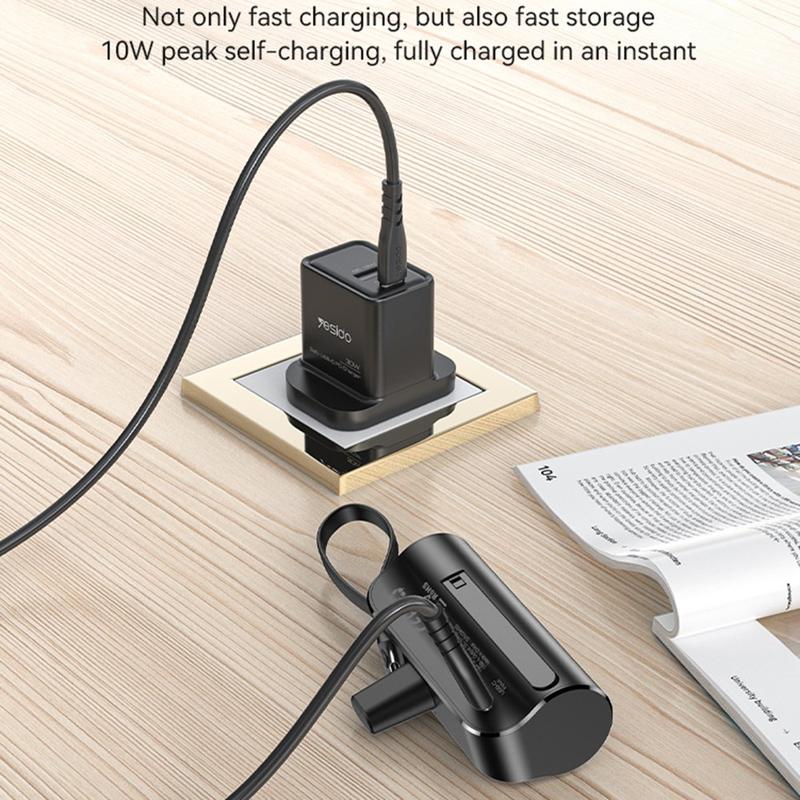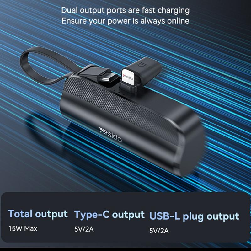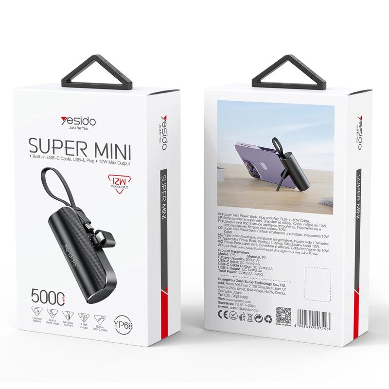 Yesido YP68 5000mAh Lightning Power Bank med USB-C-kabel og skjult stativ