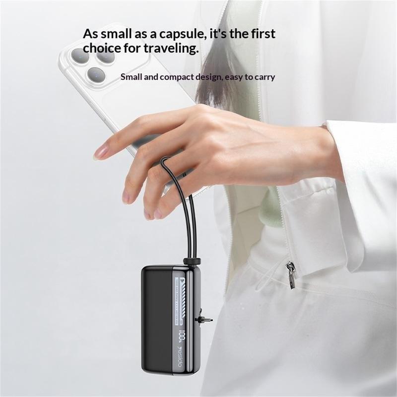 YESIDO YP99 Power Bank er en praktisk, bærbar lader utviklet for rask og praktisk lading hjemme, på jobben eller på reise. Med en batterikapasitet på 10000mAh, et kompakt design i kapselform og en innebygd USB-C-til-Lightning-kabel tilbyr den en enkel alt-i-ett-ladeløsning for moderne smarttelefoner og andre kompatible enheter. Den kompakte størrelsen gjør den enkel å ha med seg i vesken, lommen eller i det daglige reiseutstyret.