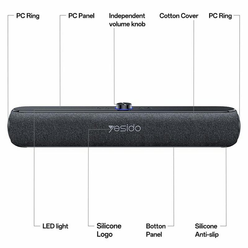 Yesido YSW42 bærbar Bluetooth-høyttaler/lydbar 20W - TF-kort og Type-C-inngang, håndfri samtaler, 7 timers spilletid