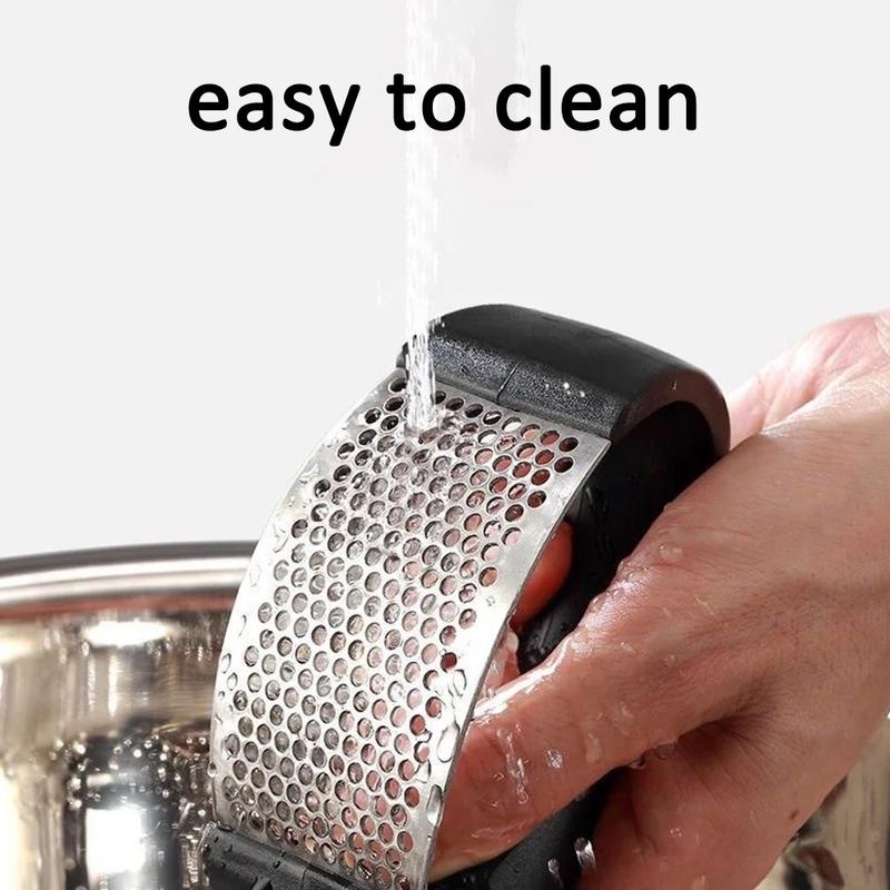 - Uanstrengt hvitløkspressing - Det ergonomiske håndtaket gjør det raskt og enkelt å presse hvitløk eller ingefær, selv for dem med mindre hender eller redusert gripestyrke.