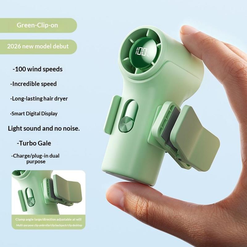 YS-G10 Mini-håndvifte med klips - Oppladbar vifte med 3000 mAh batteri, digitalt display og 100 hastighetsinnstillinger