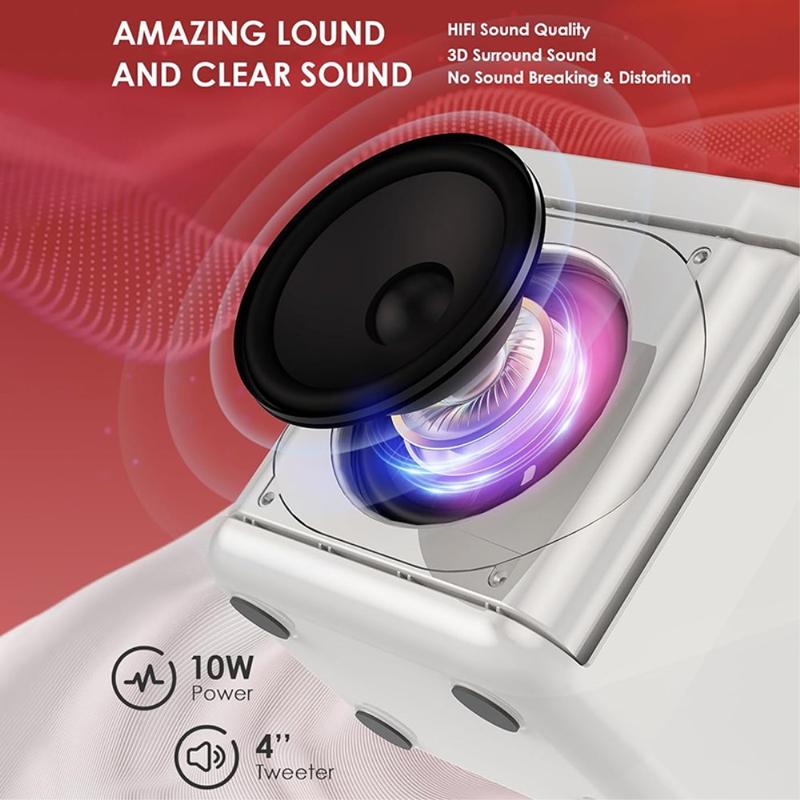 Den bærbare karaoke-maskinen har en innebygd, stor, profesjonell høyttaler som bruker avanserte lyddrivere og digitale signalprosessorer for å gjøre lydkvaliteten klarere og mer stereoskopisk og for å eliminere all støy.