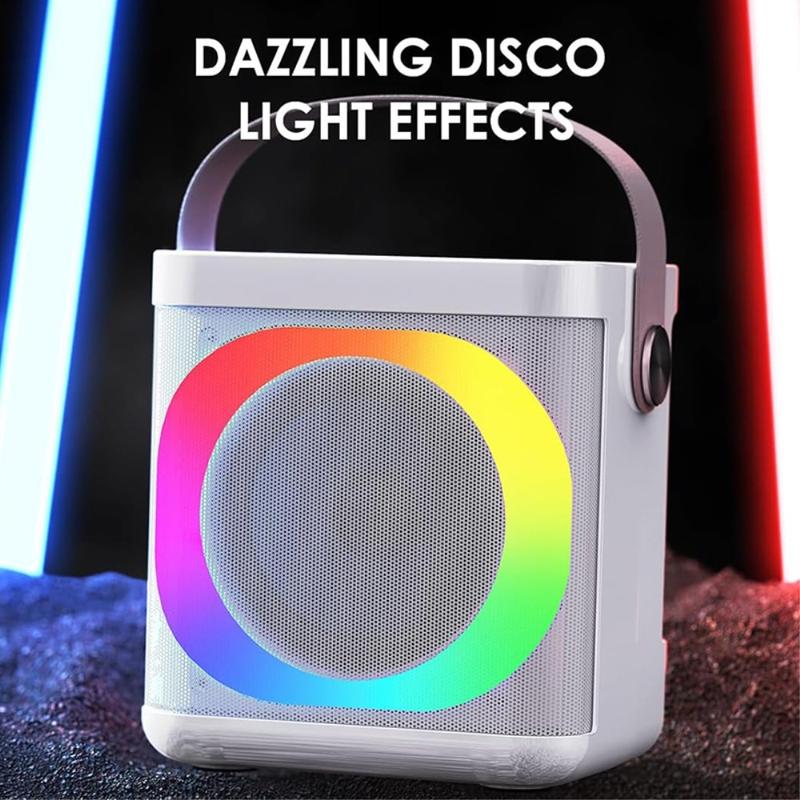 Karaokesystemet er utstyrt med fargerike diskolys og har en egen knapp for å skifte lys. De fargerike LED-lysene gir deg, familien og vennene dine en fargerik og festlig atmosfære.