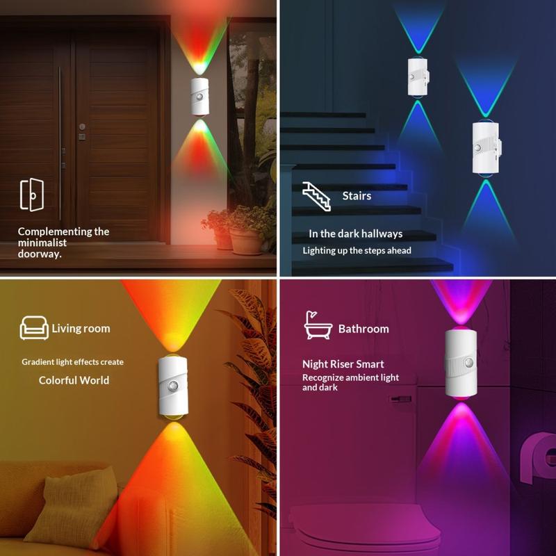 Gi hjemmet ditt praktisk belysning og et mykt, dekorativt preg med det smarte RGB-nattlyset med bevegelsessensor, YSJ-008A. Denne kompakte vegglampen er designet for ganger, soverom, garderober, bad og inngangspartier, og kombinerer automatisk bevegelsessensor, justerbar lysstyrke og fargerike RGB-lyseffekter i én praktisk, oppladbar enhet.