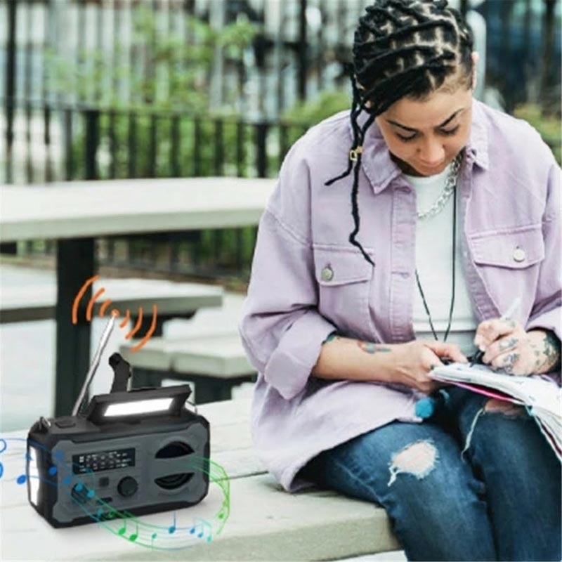 Den integrerte værbåndsradioen lar deg motta nødvarsler og oppdateringer, mens den sterke 3W LED-lommelykten gir pålitelig belysning. En separat 180 graders roterbar leselampe gjør det praktisk å lese, reparere eller arbeide i svakt lys. Når det er sollys tilgjengelig, hjelper solcellepanelet med å lade det interne batteriet, og den innebygde håndsveiven gir reservestrøm når det er nødvendig.