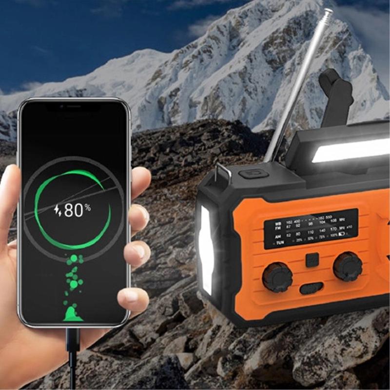 Den integrerte værbåndsradioen lar deg motta nødvarsler og oppdateringer, mens den sterke 3W LED-lommelykten gir pålitelig belysning. En separat 180 graders roterbar leselampe gjør det praktisk å lese, reparere eller arbeide i svakt lys. Når det er sollys tilgjengelig, hjelper solcellepanelet med å lade det interne batteriet, og den innebygde håndsveiven gir reservestrøm når det er nødvendig.