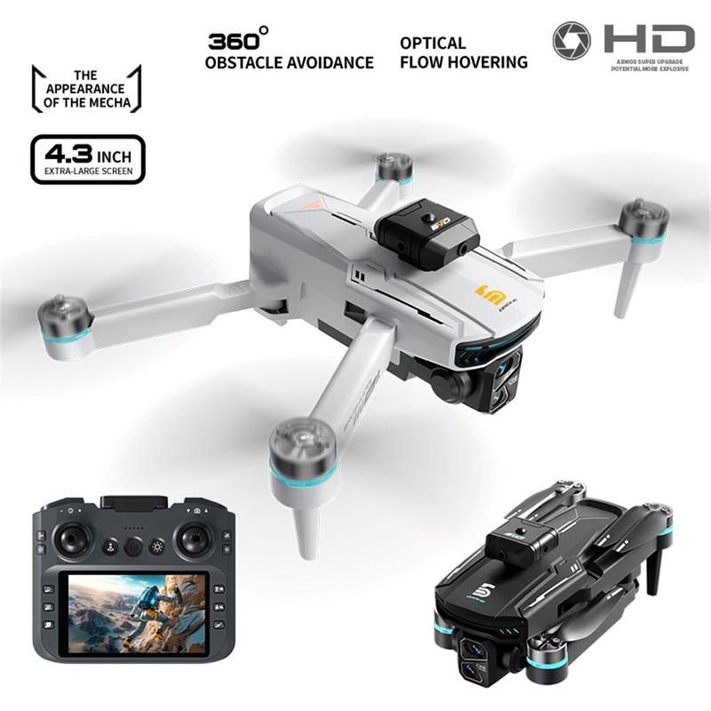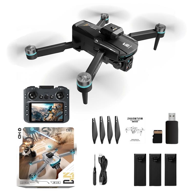Z105 Smart drone med dobbelt kamera, 4.3" skjerm, kontroller og 3 batterier - børsteløs quadcopter med motor for å unngå hindringer
