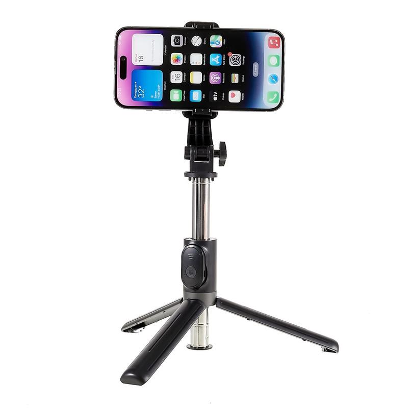 - Teleskopstangen kan forlenges fra 20 cm til 103 cm for vidvinkelselfies, overheadbilder og opptak av folkemengder