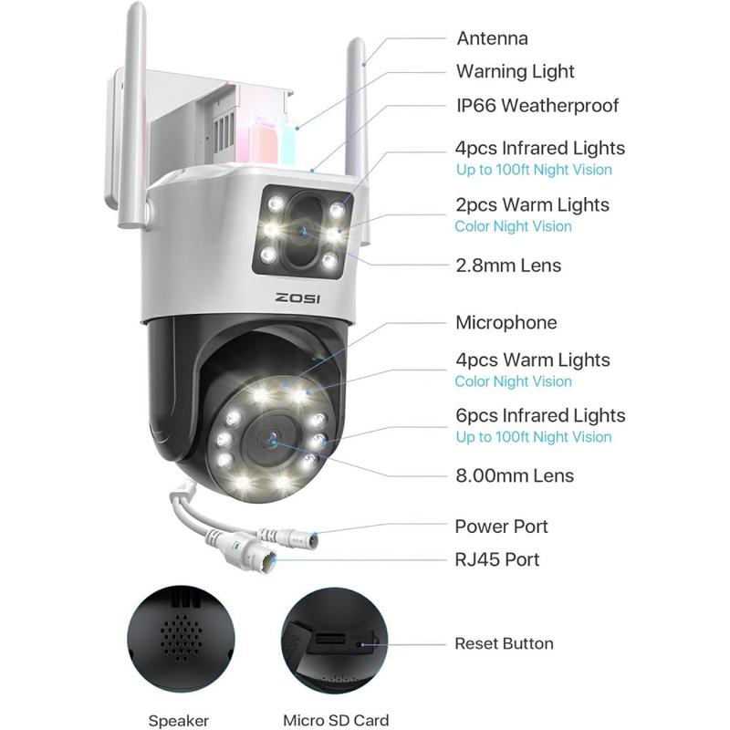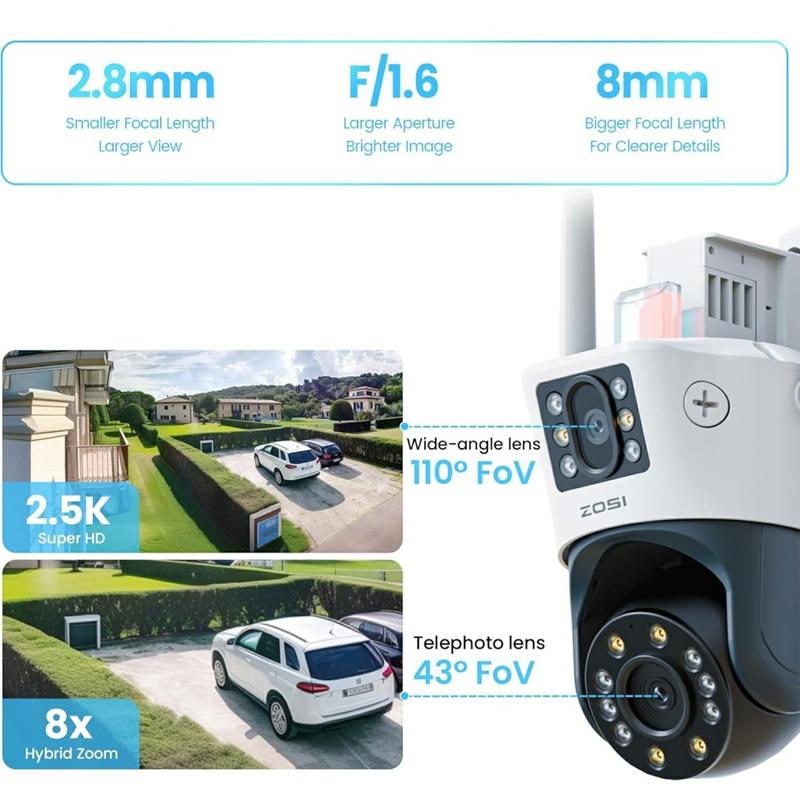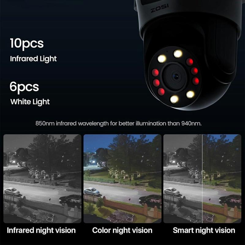 Gi hvert hjørne av oppkjørselen, hagen eller butikkfronten beskyttelse døgnet rundt. ZOSI C298Pro kombinerer to skarpe 8-megapikselobjektiver med full 355° panorering / 140° vippebevegelse, slik at én værforseglet enhet gir omfattende dekning, knivskarpe nærbilder og nattbilder i ekte farger - alt strømmet direkte til telefonen din på sekunder.