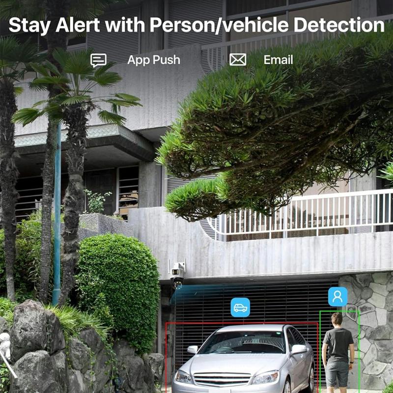 - AI-kjøretøy- og humanoiddeteksjon med smart automatisk sporing og umiddelbare push-varsler