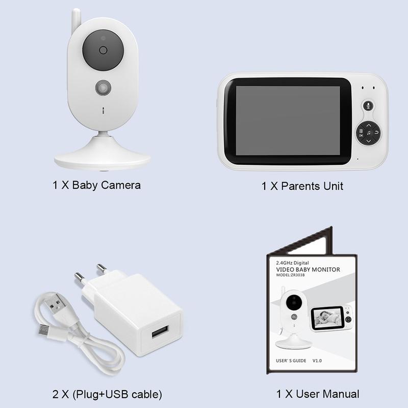 ZR303B babyalarm med 3,2-tommers LCD-skjerm, 2,4 GHz FHSS, toveis lyd, nattesyn og temperaturvarsel