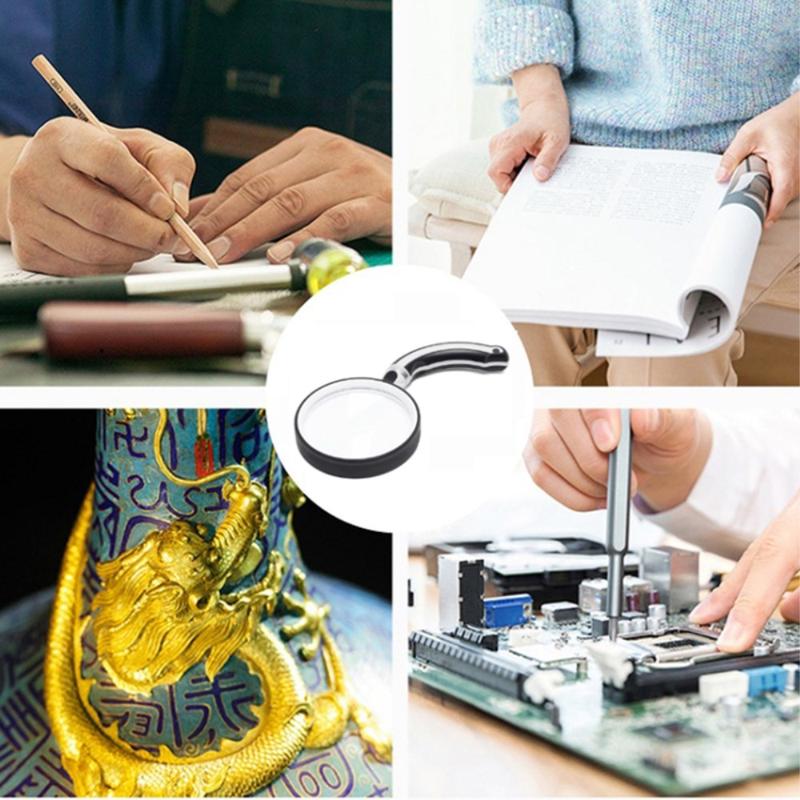 Dette forstørrelsesglasset har en god balanse mellom forstørrelsesstyrke og komfort. Den store linsen reduserer belastningen på øynene, mens det myke gummihåndtaket sikrer et stødig grep under bruk. Den sammenleggbare og slitesterke designen gjør den egnet til daglig lesing, utendørs utforskning og pedagogiske aktiviteter for barn, samt som praktisk hjelp for eldre.